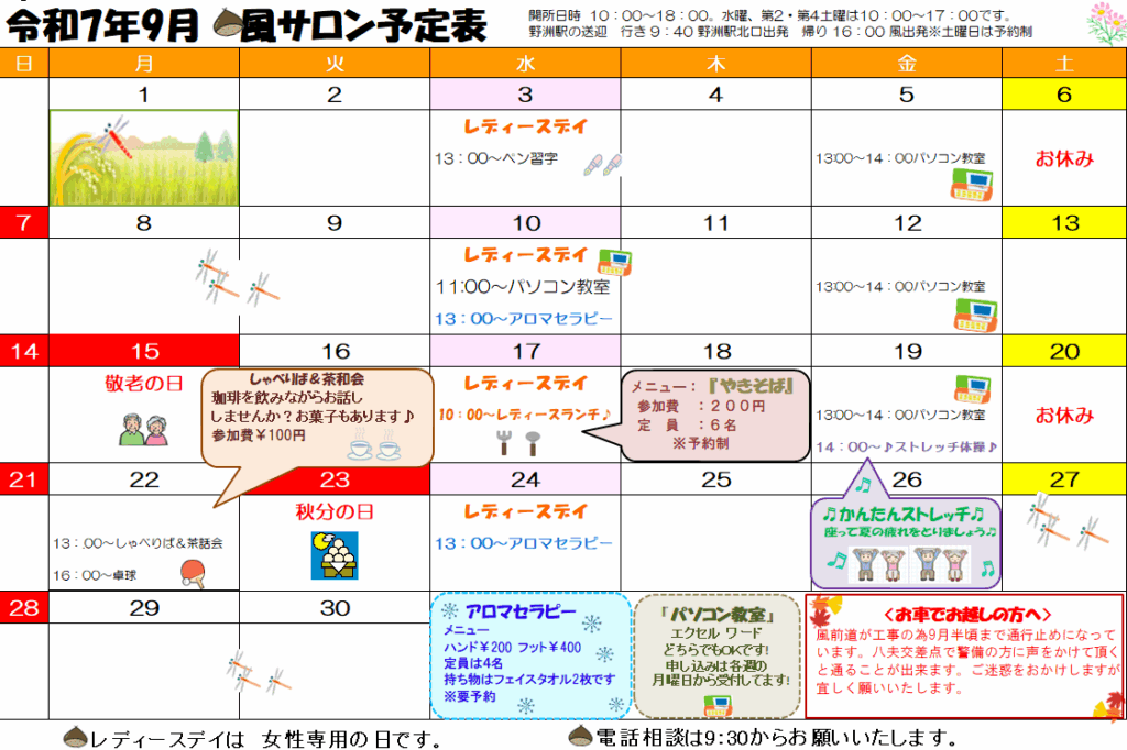相談・サロン利用は無料。飲食は実費をいただきます。